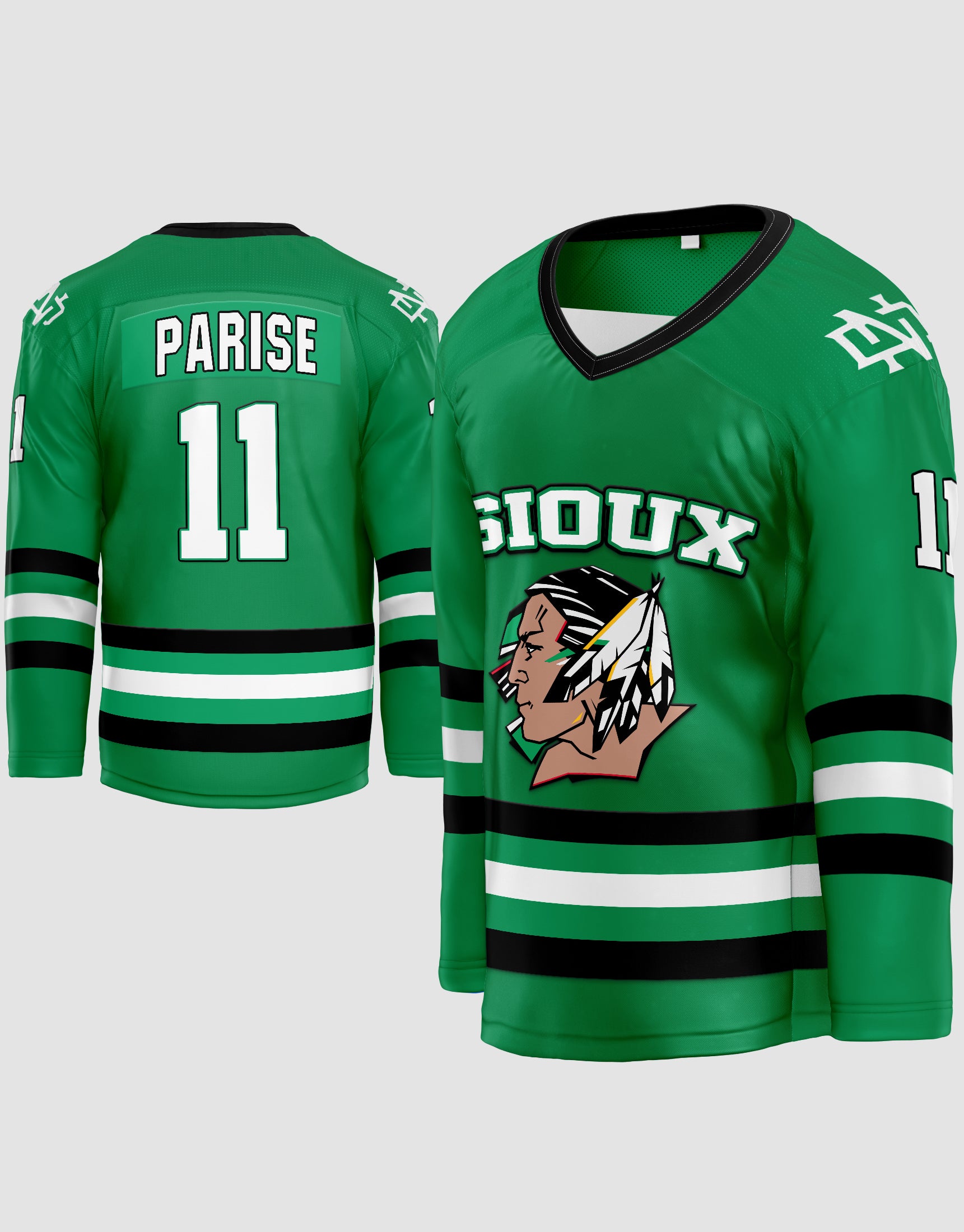 Este Camiseta de hockey siux es de Dakota del Norte Sioux. Zach Parise es un extremo izquierdo profesional estadounidense de hockey sobre hielo que jugó hockey de la NCAA para la Universidad de Dakota del Norte ( UND ). El número de camiseta es el 11.